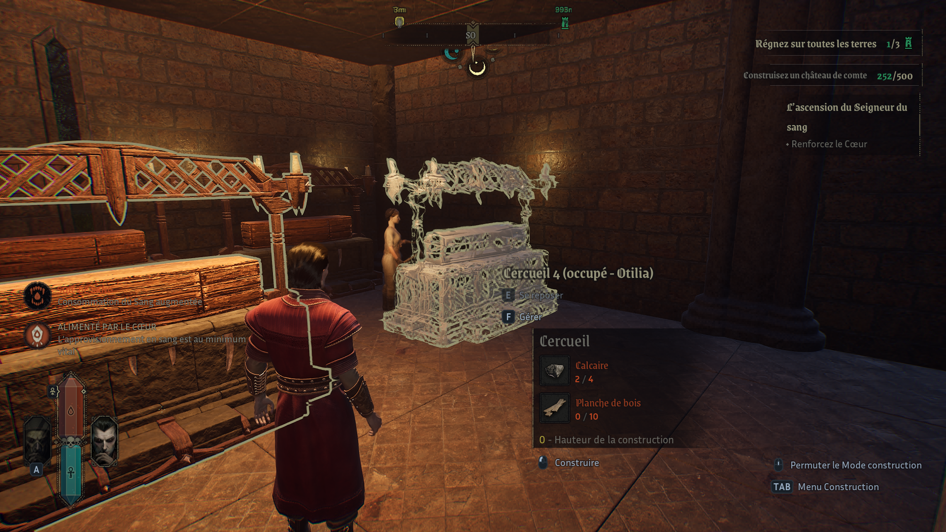 Vampires: Bloodlord Rising est un jeu hybride qui mélange gestion, construction, action et RPG. Vous bâtissez votre château pièce par pièce. Vous capturez des paysans pour les transformer en serviteurs vampires et chaque serviteur peut être assigné à une tâche précise. Le tout rappelle certaines mécaniques vues dans Conan Exiles. La progression RPG repose sur des statistiques, un peu de loot, et des pouvoirs à débloquer. Pour l’instant, le contenu est limité, mais prometteur: on peut déjà se transformer en chauve-souris ou devenir invisible.