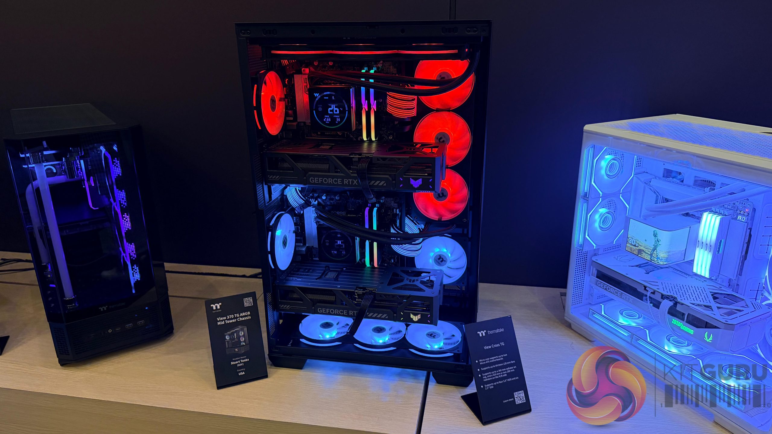 On the case side, Lian Li showcased new additions across its LANCOOL, O11 and Vector families. The LANCOOL 4, which was announced shortly before the event, appeared in its final form with the curved front panel and triple‑fan intake layout. The O11 Vision M also made a physical debut, presenting a wider internal layout and a revised chamber structure aimed at improving component clearance and airflow. Lian Li also displayed the Vector V150, a compact chassis with a hybrid mesh‑and‑glass front panel.