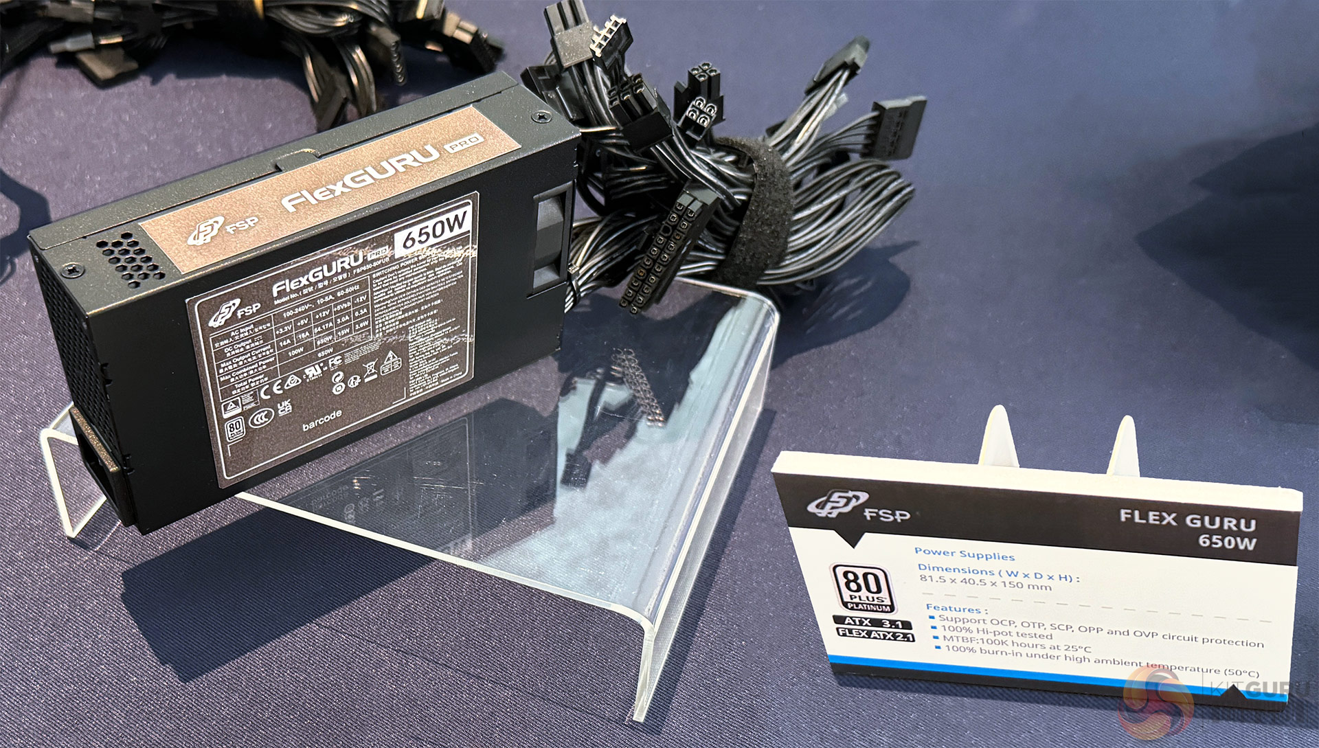 Focusing on size, the FlexGURU 650W is a lower-cost, smaller form factor power supply that still delivers up to 650 watts with efficiency levels that peak at Gold level. The external dimensions are 81.4mm x 40.5mm x 150mm. FSP claims that even with this compact design, they can offer 100,000 hours (over 11 years) mean time between failure in a 25-degree ambient environment. Given that 100% of these units shipped by FSP will undergo/survive the kind of Hi-Pot (lightning) test we saw on a previous visit – their confidence is probably well placed. Although exact figures were not available when we saw the product, FSP claims that it will be at a ‘surprisingly low price’ for the specification.