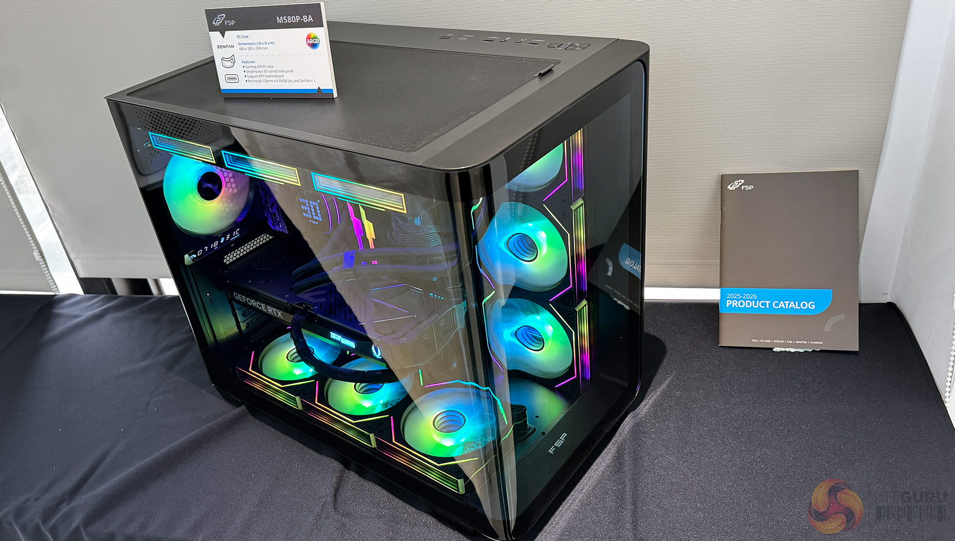 Arguably, the most attractive on show was the updated M580P-BA case – which measures 460mm x 285mm x 398mm and comes with 6 ARGB fans pre-installed as well as an FSP ZenFan. This case is likely to be around £180 in the UK and it could be interesting if FSP has picked up on the earlier M580 we reviewed back in February 2025 – including strengthening the build and including modular fan brackets. As with all FSP products, increased availability in the UK would be a bonus.
