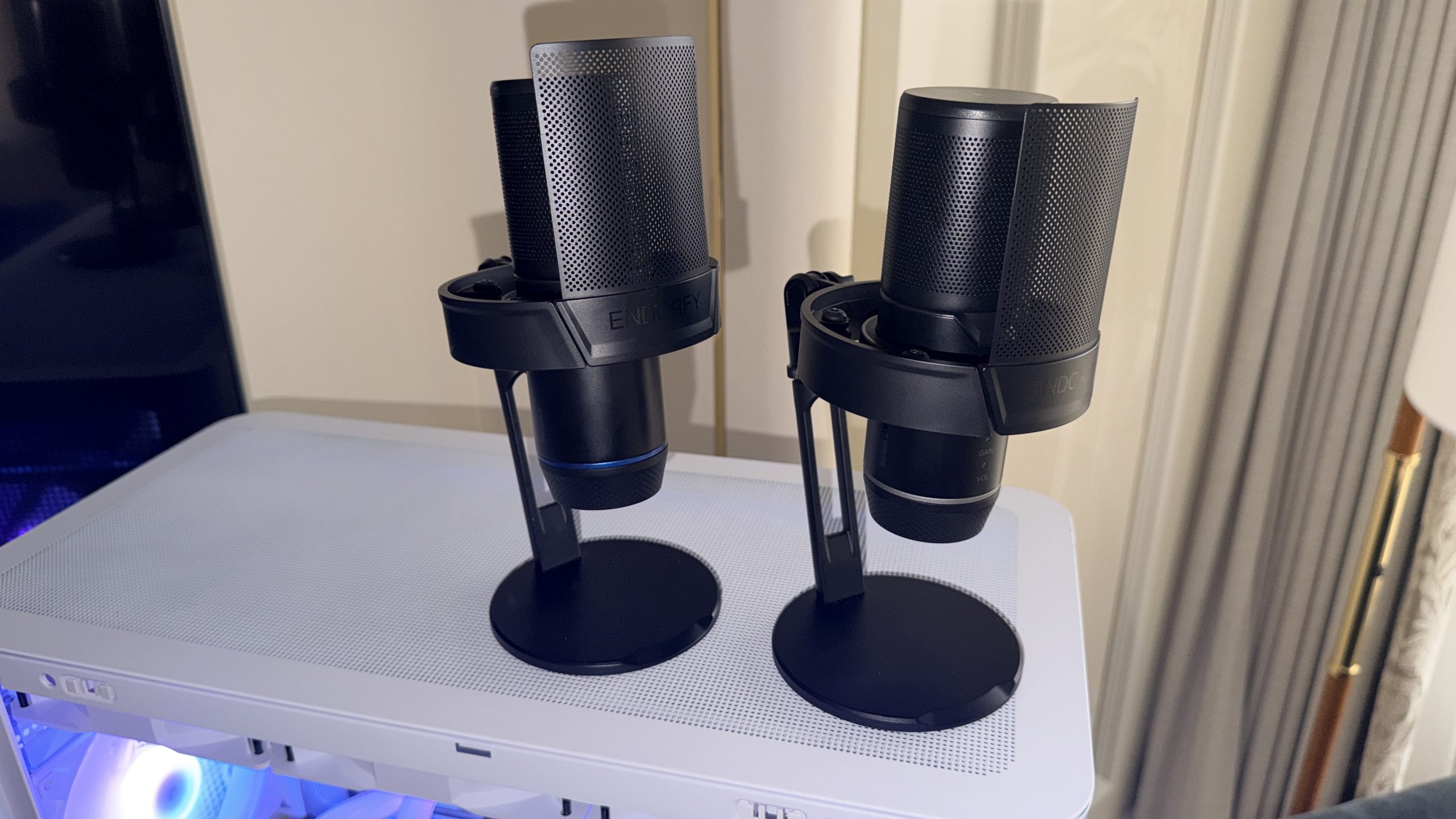Endorfy has a wide range of Solum branded microphones on the market but this year, we are getting the Solum 2 and the Solum 2 Pro. These are standalone microphones, featuring a twist dial at the base that switches between volume and gain, so you'll be able to make adjustments on the fly without diving into any software. These are expected to enter full production soon, with availability between March and April. Pricing is around €99 for the Pro, €85 for the standard model, and roughly €70 for the entry‑level ‘Core' version. USB and 3.5mm connectivity is provided on the rear.