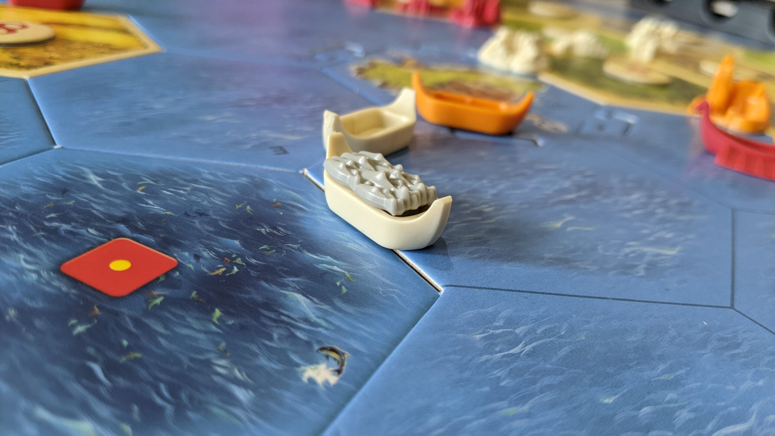 Les extensions Marins et Pirates et Découvreurs permettent d’étendre le jeu de base avec des plateaux beaucoup plus grands. Ainsi, selon les scenarios joués on aura plus ou moins d’espace de jeu avec des étendues d’eau désormais mais aussi d’autres terres à découvrir. Des tuiles à l’envers sont à retourner en explorant les lieux avec des explorateurs, eux-même embarqués sur un bateau à faire circuler sur la carte. Comme le principe de base l’exige il faudra user de ressources pour construire un bateau, une zone portuaire ou bien ces fameux explorateurs.
