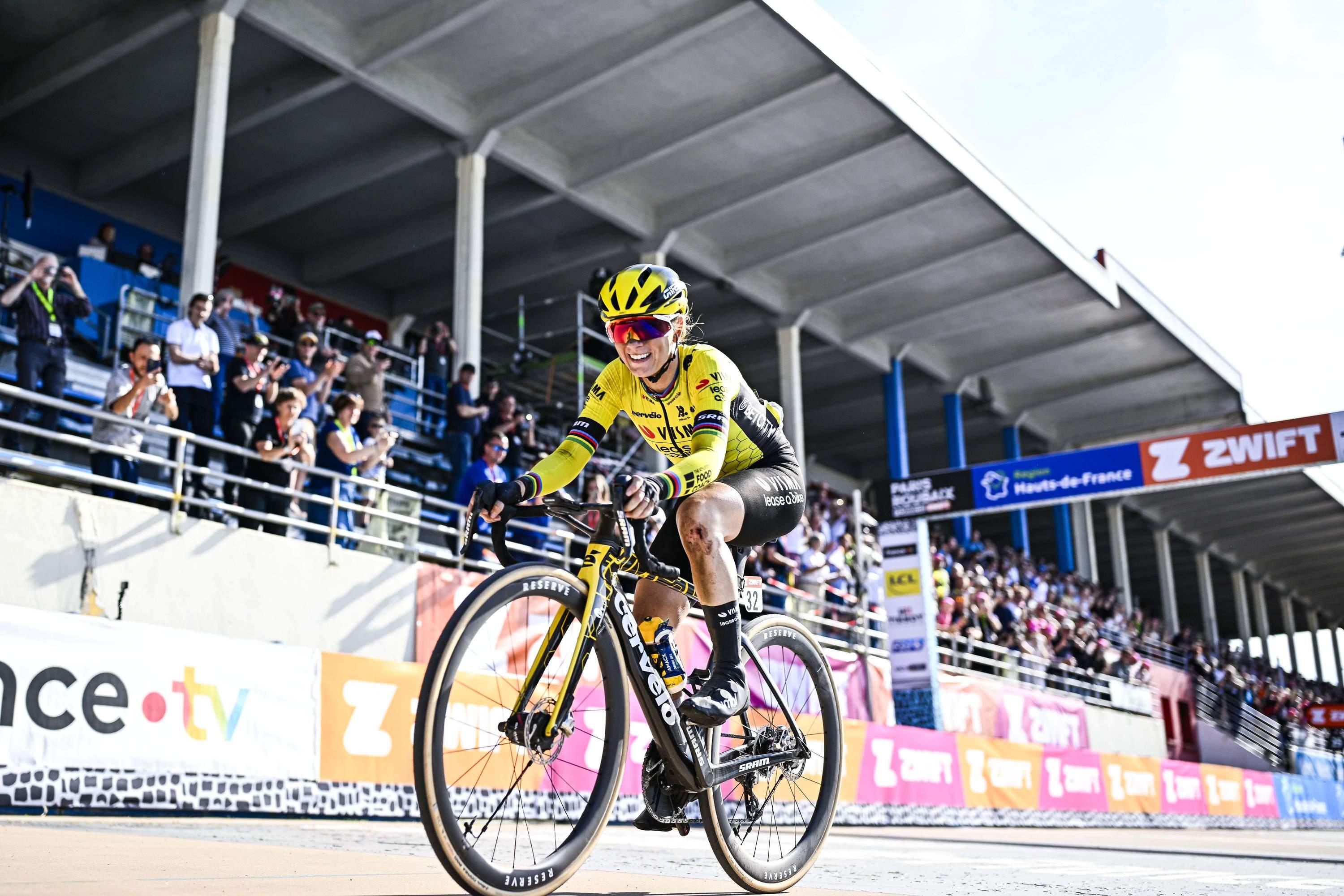 Pauline Ferrand Prévot sur le vélodrome de Roubaix en 2025.