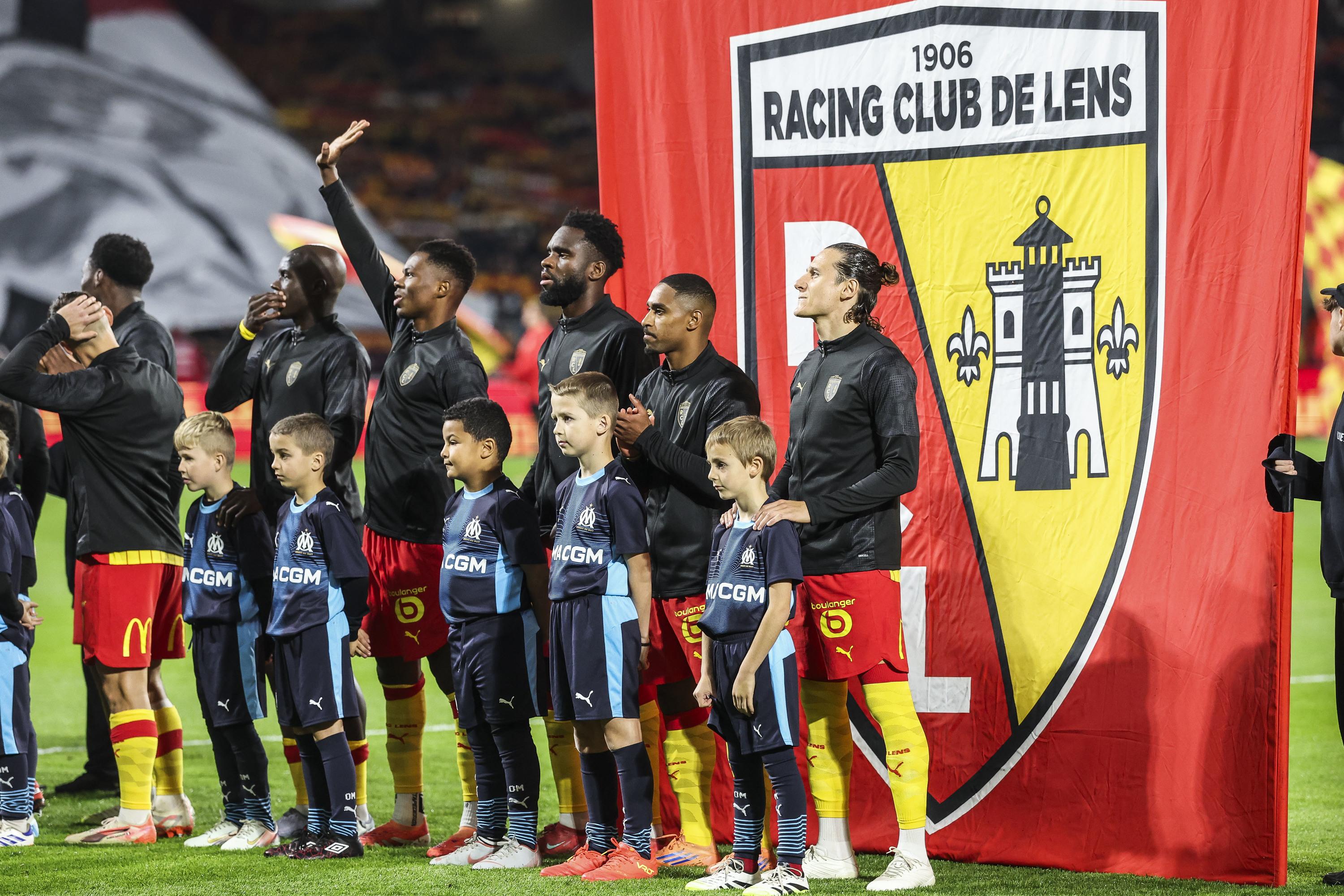 Mamadou Sangaré, Odsonne Edouard, Wesley Saïd et Florian Thauvin (de gauche à droite) avant le choc contre l’OM au stade Bollaert-Delelis, le 25 octobre.