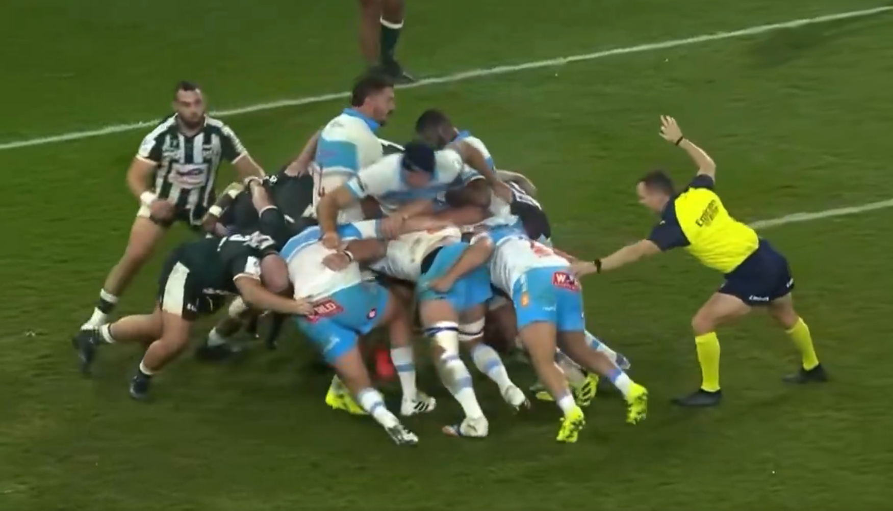 À l’occasion de Pau-Bulls, ce vendredi soir, l’arbitre anglais Karl Dickson s’est vu tirer le maillot du talonneur sud-africain Akker van der Merwe, lui permettant de réduire le score dans le premier acte.