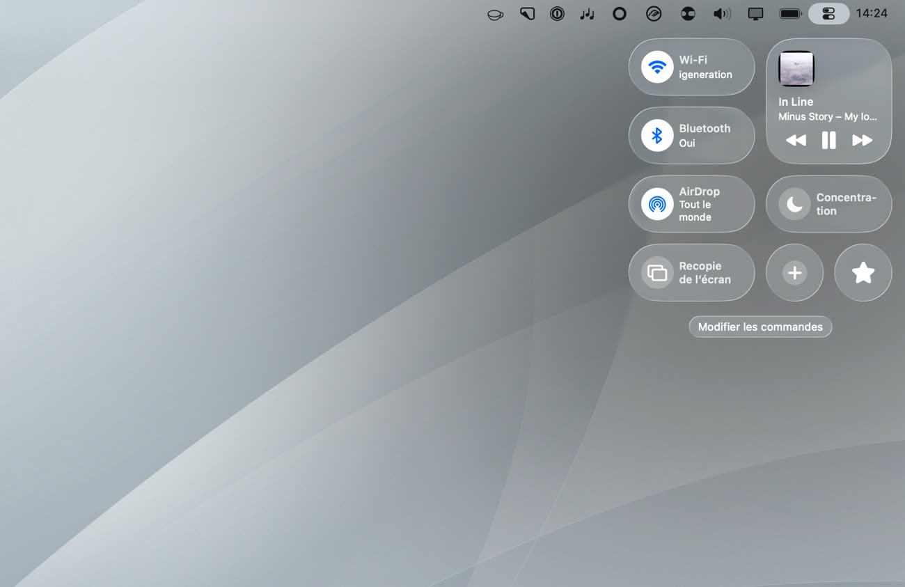 Pour rappel, le centre de contrôle de macOS Tahoe est largement personnalisable. Comme sur iOS, il est maintenant possible d’ajouter ou de supprimer des commandes. Pour l’instant, encore très peu d’applications tierces proposent des boutons spéciaux.