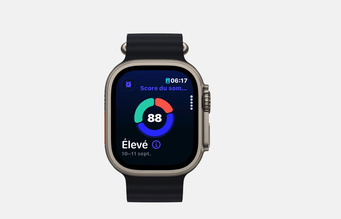 Avec watchOS 26, l’Apple Watch attribue un score de sommeil de 0 à 100 basé sur trois critères : la durée du sommeil (50 points), l’heure du coucher (30 points) et les réveils nocturnes (20 points). Le score a souvent été jugé trop généreux, une nuit moyenne pouvant afficher autour de 80.