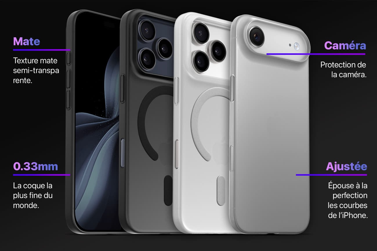 L'anneau MagSafe incorporé développe une puissance de maintien conséquente. Les accessoires ne se décrochent pas au moindre mouvement. Le traitement anti-rayures de haute qualité complète le tableau. Cette coque vise ceux qui veulent le summum de la discrétion sans renoncer aux fonctionnalités modernes.