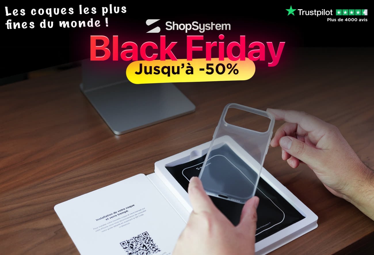 ShopSystem casse les prix du 27 novembre au 5 décembre avec des réductions qui grimpent jusqu'à - 50 % sur ses coques et accessoires iPhone. L'occasion rêvée pour protéger son appareil sans le transformer en brique.