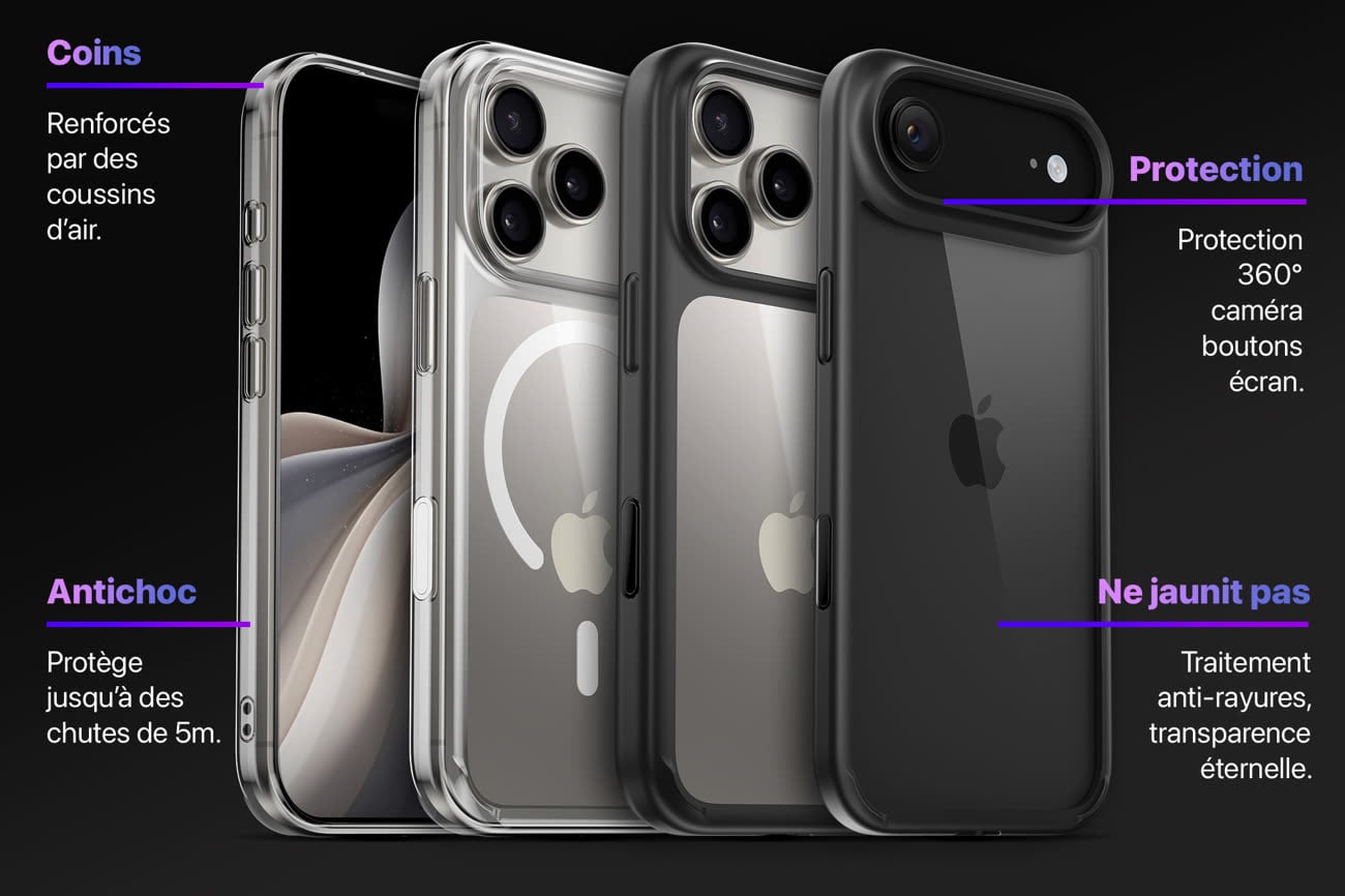 Les réductions grimpent jusqu'à -50% du 27 novembre à 9h00 au 5 décembre à 23h59. Les prix baissent directement sur le site, sans code promo à chercher ou à copier-coller. On ajoute au panier, le prix réduit s'affiche automatiquement. Ces huit jours représentent l'occasion d'équiper son iPhone pour l'année à venir. Coque ultra-fine pour le quotidien, coque renforcée pour les week-ends actifs, verre trempé pour l'écran, protection de caméra : on compose sa panoplie selon ses besoins réels.