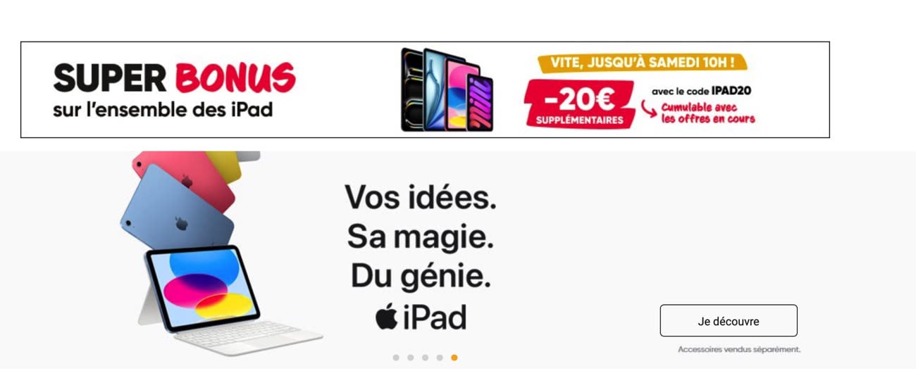 La remise est disponible jusqu’à samedi 10h, en entrant le code IPAD20 lors de la commande.