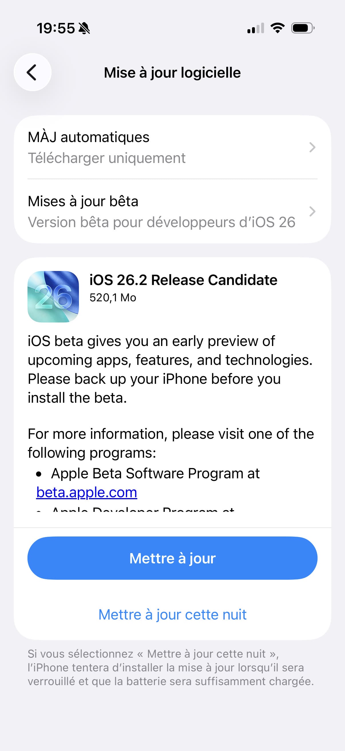 La finale des 26.2 attendra, on a une RC2 pour iOS 26.2 pour ce soir
