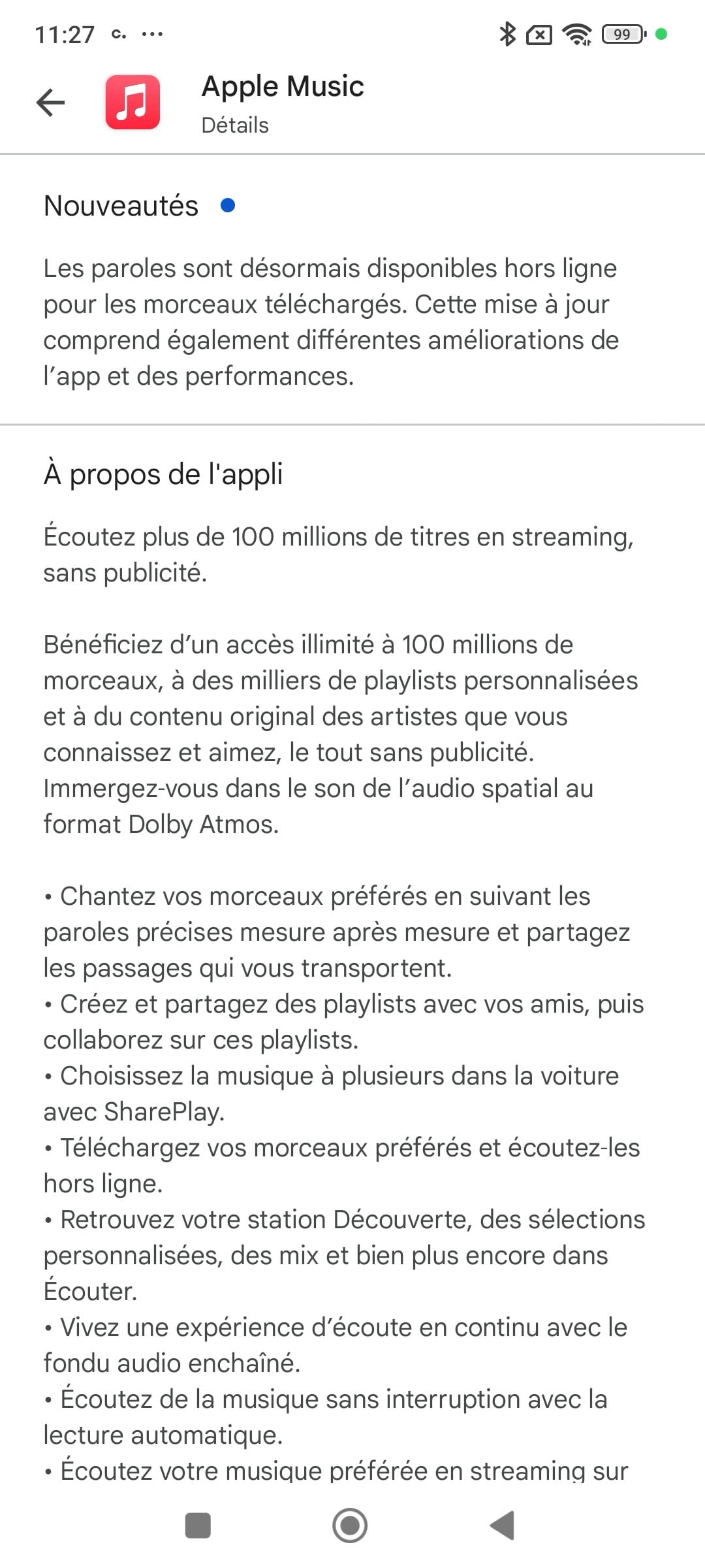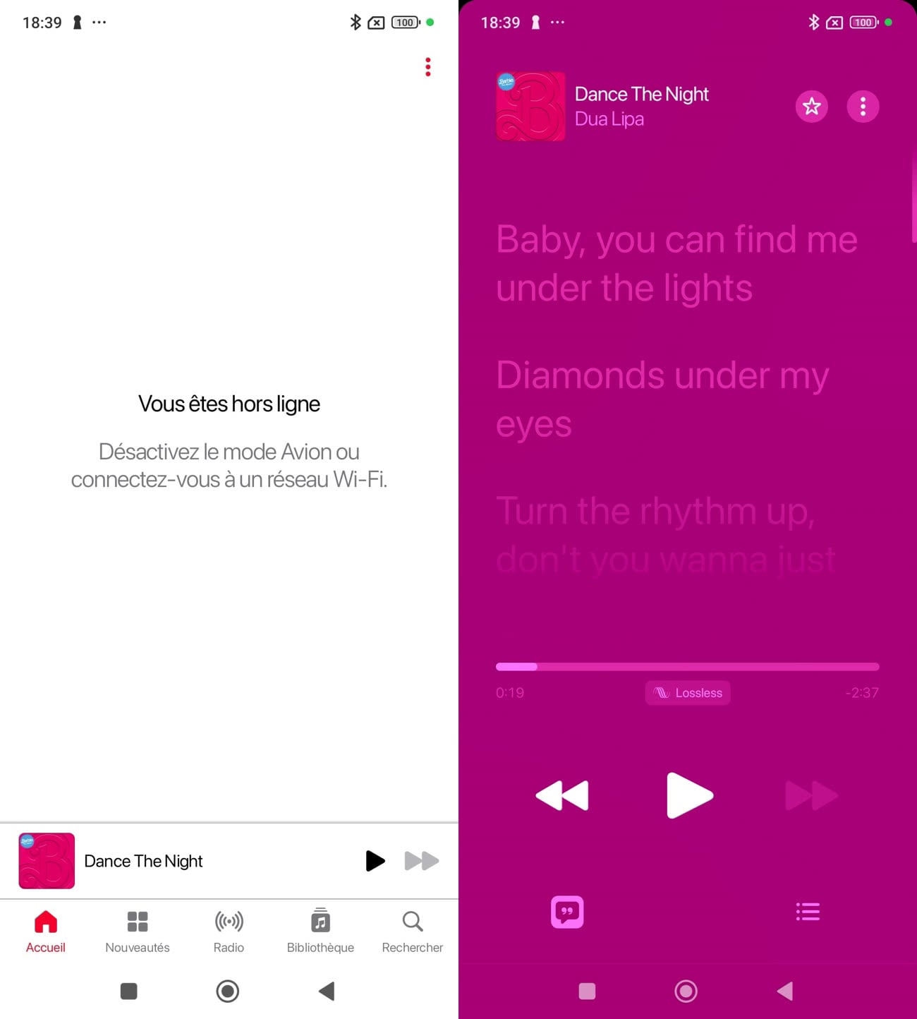 La version Android d'Apple Music est très complète, et Apple tend à essayer de garder des fonctions équivalentes entre la version iOS et celle proposées à ses clients qui ont un smartphone Android. Cette nouveauté est du coup assez simple à tester, il suffit de télécharger un morceau, passer en mode avion… et chanter en karaoké avec les paroles.