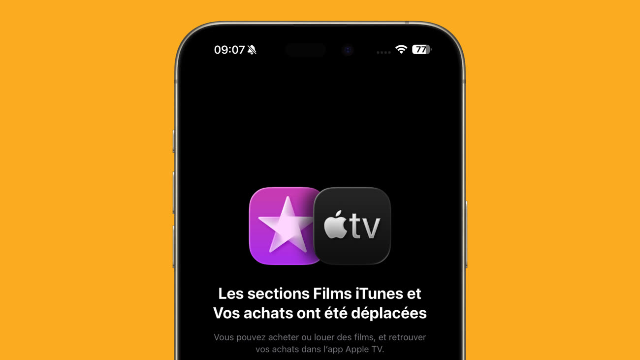 Apple n’a pas encore débranché son iTunes Store, qui continue de vivre en parallèle d’Apple TV et d’Apple Music. Depuis iOS 17.2, l'application Apple TV est d’ailleurs le seul endroit où il est possible d'acheter des séries et des films sur les appareils iOS. L’app n’a pas eu droit à un lifting Liquid Glass mais permet toujours d’acheter de la musique. Apple a envoyé un mail à ses utilisateurs avec un fichier PDF listant leurs séries et films présents dans leur liste de souhaits iTunes.