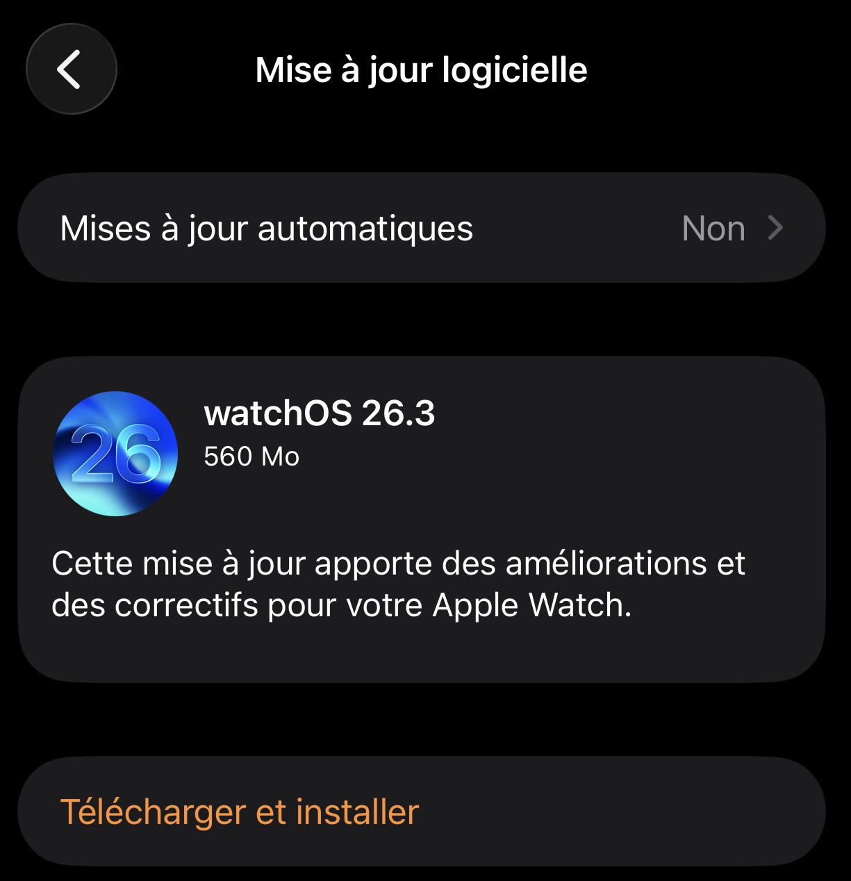 Comme pour ses cousines iOS et macOS, watchOS 26.3 n’annonce pas de grands changements dans ses notes de versions, à part quelques corrections de bugs et améliorations.