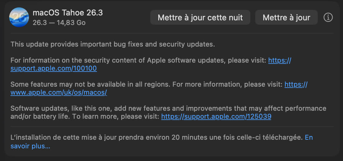 macOS 26.3 est arrivé, après un décalage de quelques minutes