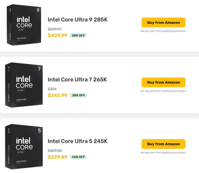 Mais quand on voit les derniers prix pratiqu�s sur les 245K, 265K et 285K, aux USA, on se dit que ces processeurs Arrow Lake pourraient �tre des bons choix.