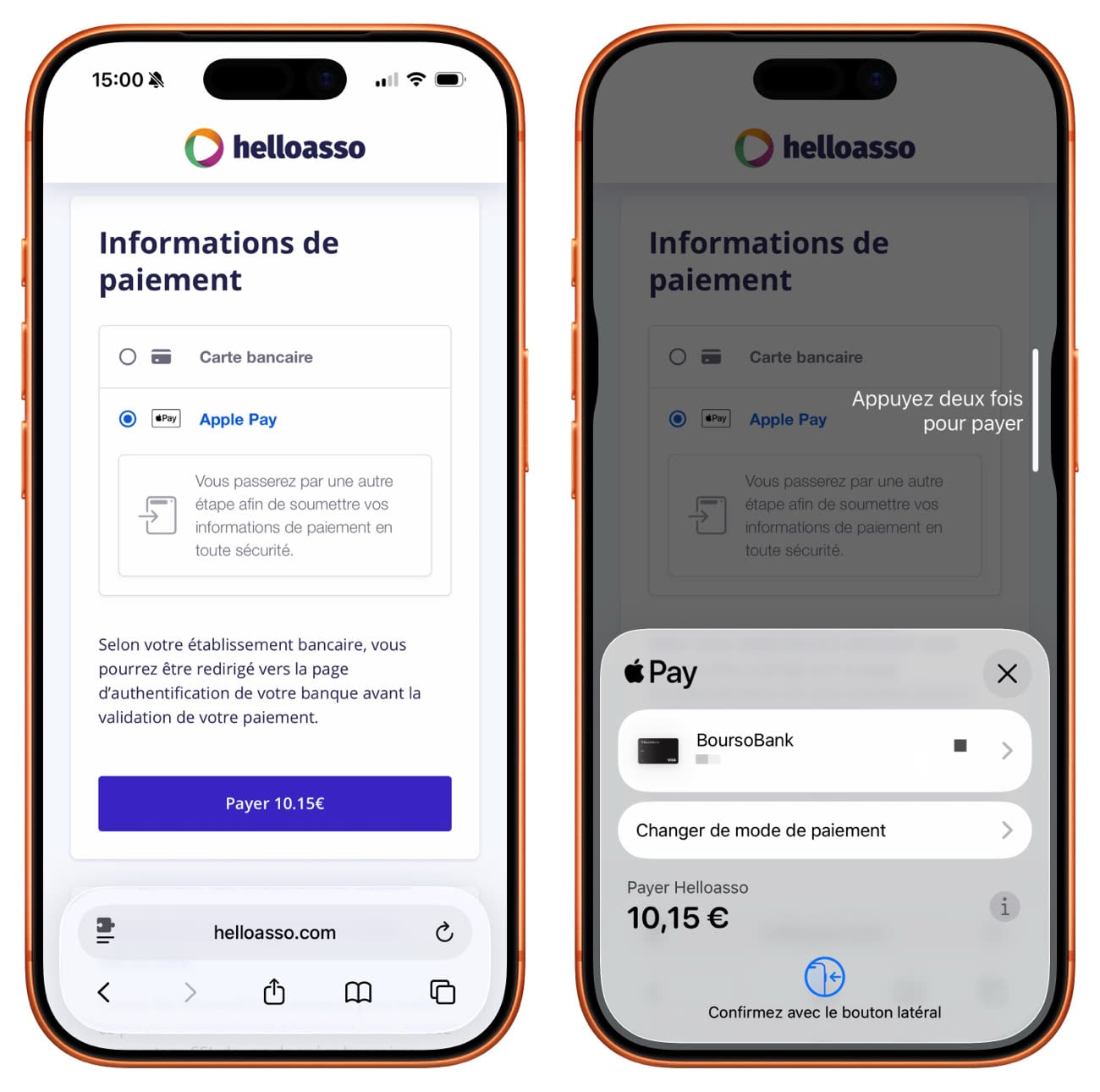 Depuis une quinzaine de jours, HelloAsso prend en charge Apple Pay, ainsi que Google Pay. Au moment du paiement, vous pouvez maintenant choisir entre la saisie des infos de votre carte bancaire à l’ancienne ou bien Apple Pay. Une évolution qui facilitera un petit peu le règlement des inscriptions à une association ou à un club sportif, la plateforme étant largement utilisée par ce type d’organisations.