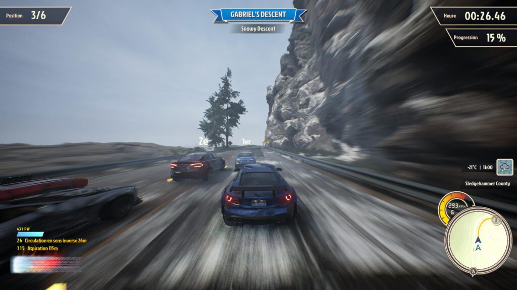 Techniquement imparfait, le jeu souffre également sur le plan de l’intelligence artificielle. Celle-ci est malheureusement très limitée et semble conçue pour vous attendre. Il nous est arrivé de nous crasher plusieurs fois pendant une course, et le comportement des adversaires s’est révélé incohérent. Lorsque nous sommes en tête, l’IA revient très rapidement grâce à des respawns approximatifs ; à l’inverse, quand nous sommes derrière, elle ralentit inexplicablement. Aucun mode de difficulté n’est disponible pour ajuster l’IA : il faudra donc se contenter du niveau par défaut.