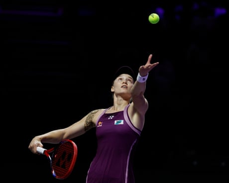 Alexandrova 3-3 Rybakina* (* denotes server): Rybakina sends down a blistering serve to Alexandrova’s backhand; it’s not one for returning. At 30-all, Alexandrova returns with a stonking forehand winner: break point. Rybakina’s whippy backhand makes it deuce … and she saves another break point to hold.