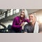 Helen DeWitt at home in Berlin, with pages from works in progress behind her.