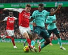 2 min: Doherty skittles Martinelli out on the left. An early free kick for Arsenal. Rice’s delivery is uncharacteristically poor, failing to beat the first man … and that first man is Doherty, who makes good his mistake by clearing.