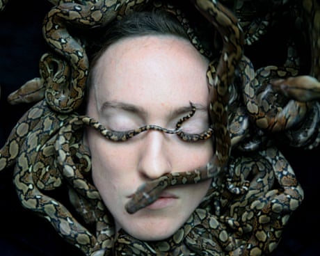 On three massive screens in a darkened room, snakes glide over the face of artist Juul Kraijer – covering her eyes, caressing her lips. She is the silent but terrifying snake-headed Medusa, and one of the surprises in an exhibition at the Rijksmuseum in Amsterdam revolving around Greek and Roman myths.