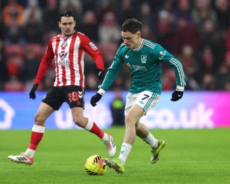 2 min: … the ball’s played back to Angulo, who tries to trick Alisson at his near post. The keeper reads the danger and claims. That’s got the home fans, already giving it plenty, going some. Meanwhile here’s Peter Oh: “Liverpool have had such bad luck with injuries, shipping comical last-gasp goals, and suspensions. How could things possibly get worse? Running into eleven Black Cats maybe? Sigh.”