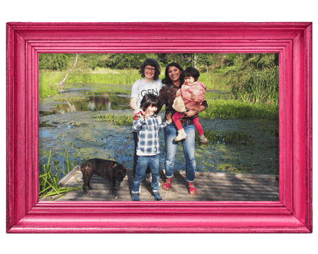 I remember the moment this photo was taken: five years ago, on my partner Claire’s birthday, in a National Trust for Scotland garden six miles east of Edinburgh. We were standing on a wooden deck, an ideal spot for pond-dipping with the kids and a lesser-known viewing platform for trainspotters. This is where my autistic son, then six, loved (and still loves) to jump in tandem with the ScotRail trains toggling back and forth in the middle distance. We had just eaten a small, hasty birthday picnic of pastries and Nosecco. We wandered down through the walled garden to the wild meadow encircling a pond. We ended up where we always end up. On our deck.