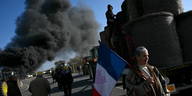 Lors d’un blocage de rond-point pour protester contre les abattages de bovins en pleine épidémie de dermatose nodulaire contagieuse, par des adhérents des Jeunes Agriculteurs, de la Confédération paysanne et de la Coordination rurale, à Carcassonne, le 17 décembre 2025.