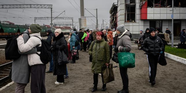 Des passagers attendent l’arrivée d’un train au lendemain des frappes de missiles et de drones russes du 6 décembre 2025 sur la gare de Fastiv, dans la région de Kiev, le 7 decembre 2025.