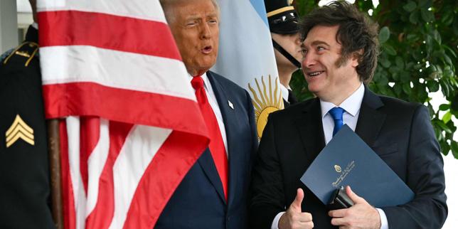 Le président américain Donald Trump accueille son homologue argentin Javier Milei à la Maison Blanche, le 14 octobre 2025.