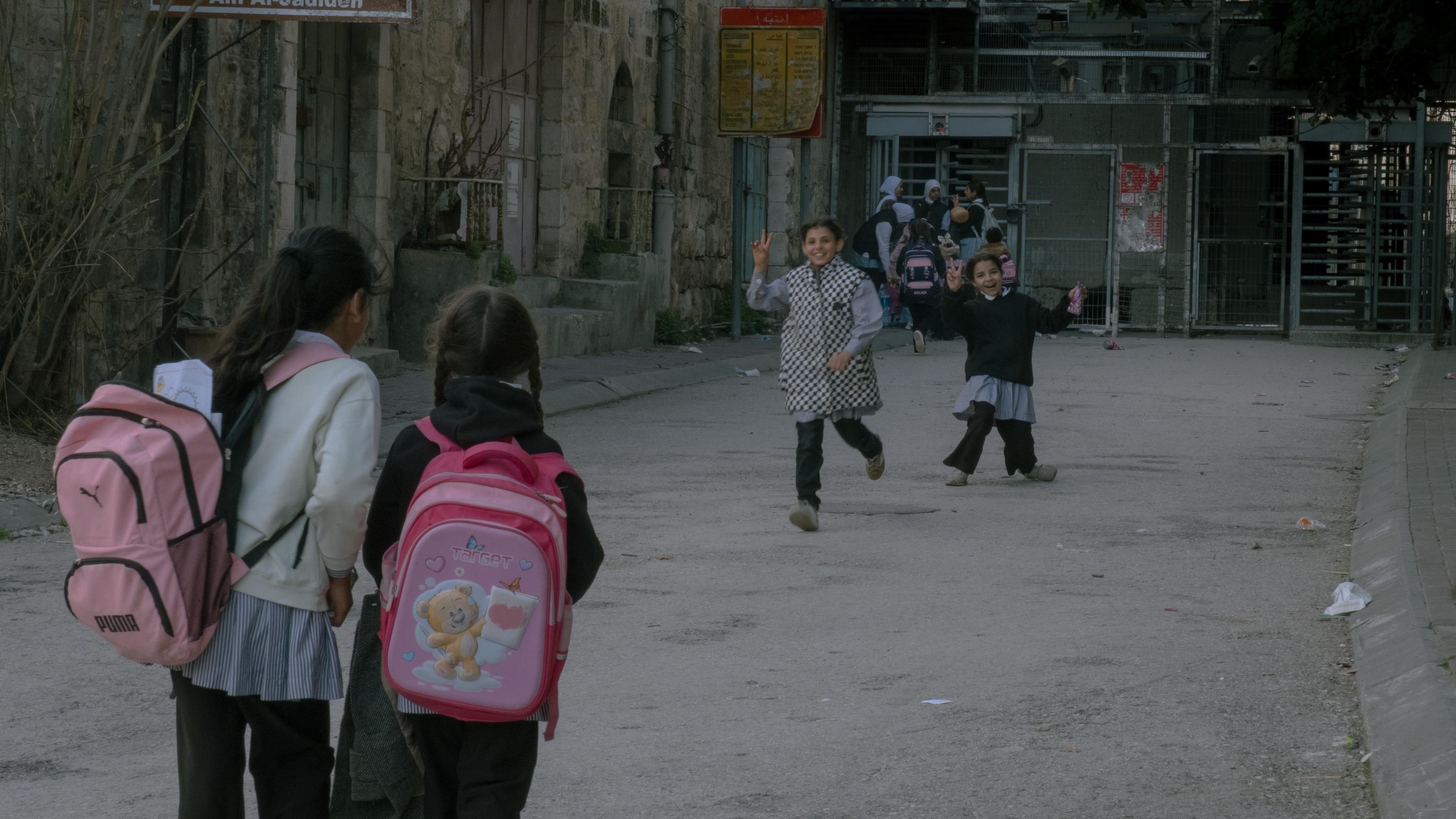 Des enfants devant le check-point de Tal Romeida, à Hébron.