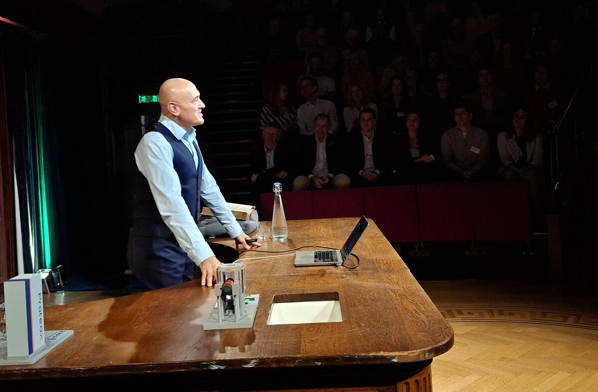 On the second day of the IOP conference at the RI, I chaired a debate that brought together four future leaders of the subject: Mehul Malik (Heriot-Watt University) and Sarah Malik (University College London) along with industry insiders Nicole Gillett (Riverlane) and Muhammad Hamza Waseem (Quantinuum).