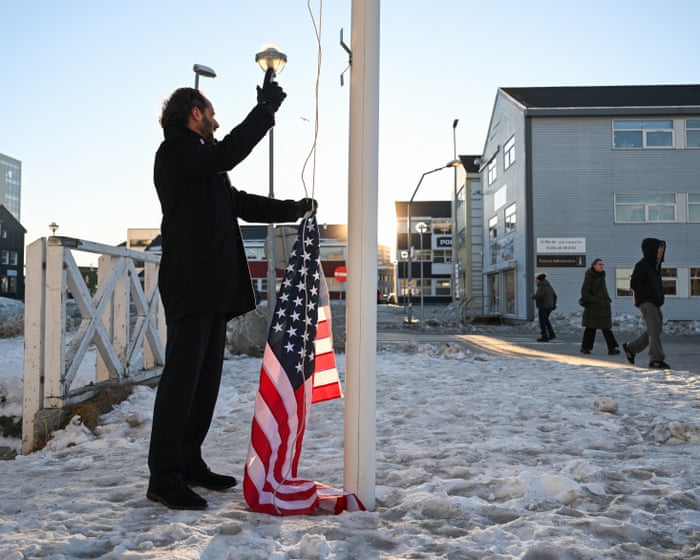 Maxi Schafroth, 41, a Bavarian comic, tried to run up the Stars and Stripes on a flagpole near the cultural centre in Nuuk but was confronted by angry passersby.