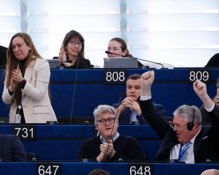 The European parliament has formally suspended the ratification process on its US trade deal, in protest against Donald Trump’s threat to impose 10% tariffs on EU exports unless the bloc agrees he can take over Greenland.