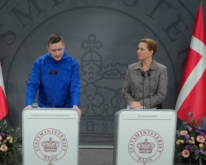 Island’s PM tells media event with Danish counterpart ‘we choose Denmark’ and will not be owned or governed by US