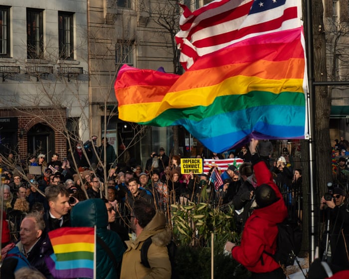Thousands of protesters gathered outside the iconic Stonewall Inn on a near-freezing night last week to re-raise the rainbow Pride flag in defiance of the Trump administration, which had unceremoniously ordered its removal days earlier.