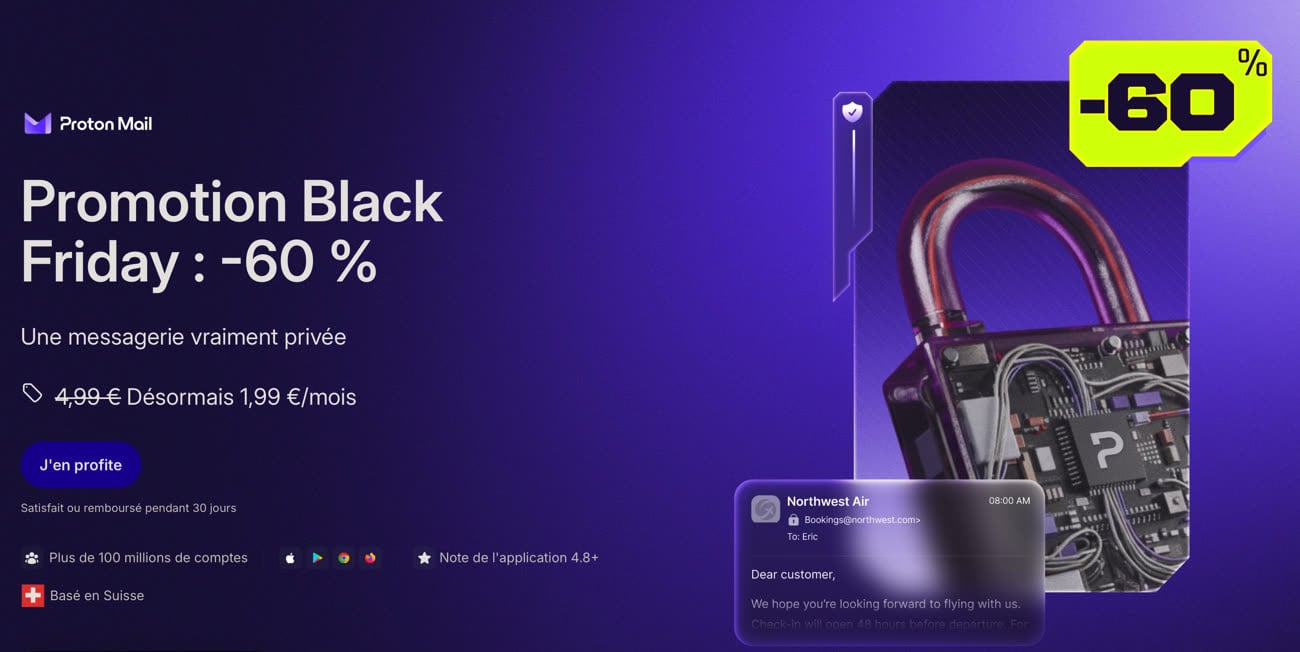 Le Black Friday commence chez Proton : Mail à 1,99 €, VPN à 2,49 € (jusqu’à -75 %)