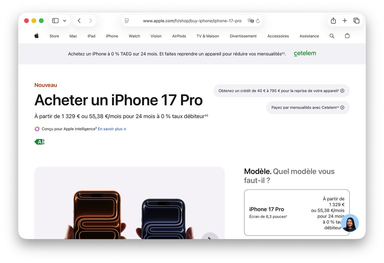 « À partir de 1 329 € ou 55,38 €/mois par mois pour 24 mois à 0 % taux débiteur. » Depuis le début de l’année, Apple met en avant dans tous les recoins de sa boutique en ligne des crédits à la consommation, dont un financement à taux zéro. Ce programme proposé en partenariat avec Cetelem est censé s’achever le 31 décembre 2025, mais il pourrait bien être reconduit au-delà.