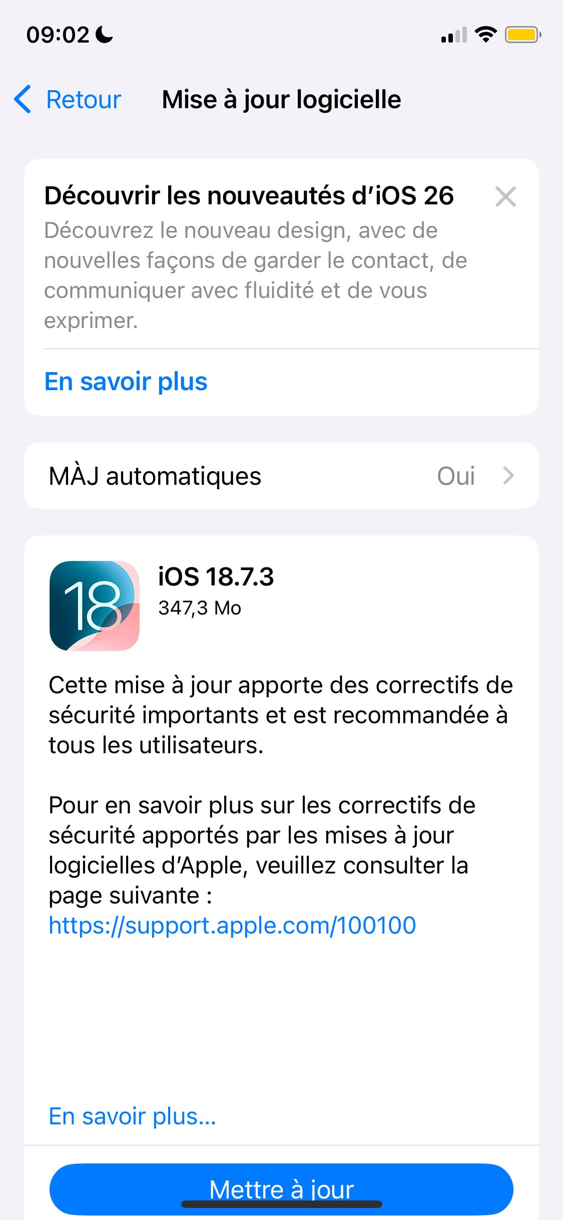 D'une manière générale, sur les terminaux restés sur une ancienne mouture, Apple continue de privilégier l'affichage de la version 26 plutôt que le simple correctif de sécurité, souvent relégué au second plan. Quel que soit votre choix, ne tardez pas à mettre à jour vos terminaux !