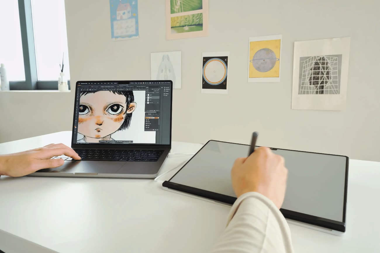 Le stylet inclus est visiblement assez poussé, reconnaissant la pression et disposant même d’un système de survol similaire à celui de l’Apple Pencil. Le produit est livré avec un étui Folio pour le transport pouvant se transformer en support se fixant contre l'écran du MacBook afin de réduire les vibrations. Une fois retiré de l'écran, l'appareil peut également servir de tablette graphique autonome.