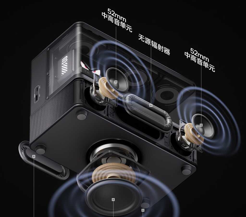 Vendue 1 499 yuan, soit environ 200 EUR, la New Cyber combine une esthétique de PC qui rappelle, au premier coup d’oeil, la série Prime AP d’Asus, avec de réelles ambitions acoustiques. Elle embarque un woofer de 4 pouces, trois radiateurs passifs pour soutenir les basses, et deux haut-parleurs de 52 mm dédiés aux médiums et aux aigus.