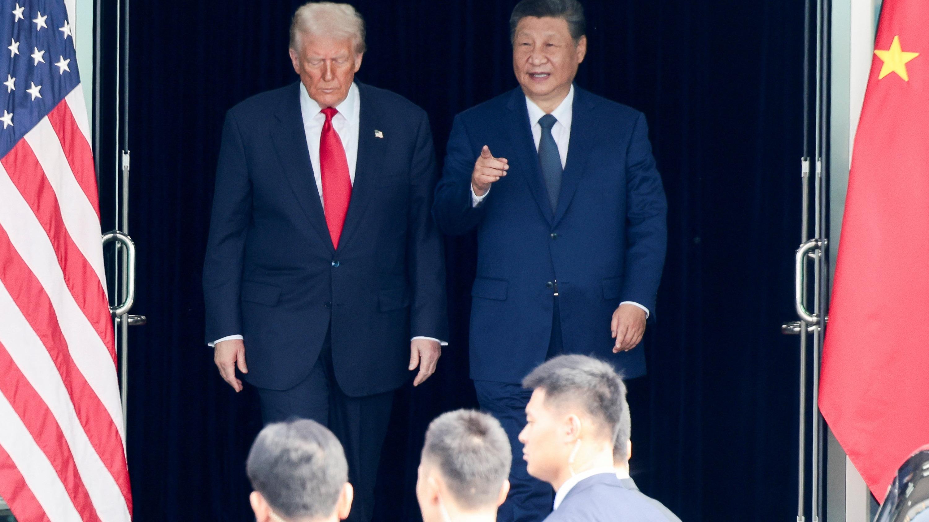 Le président américain Donald Trump et le président chinois Xi Jinping lors d’une réunion bilatérale à l’aéroport de Gimhae, en marge du sommet de la Coopération économique Asie-Pacifique, à Busan, en Corée du Sud, le 30 octobre.