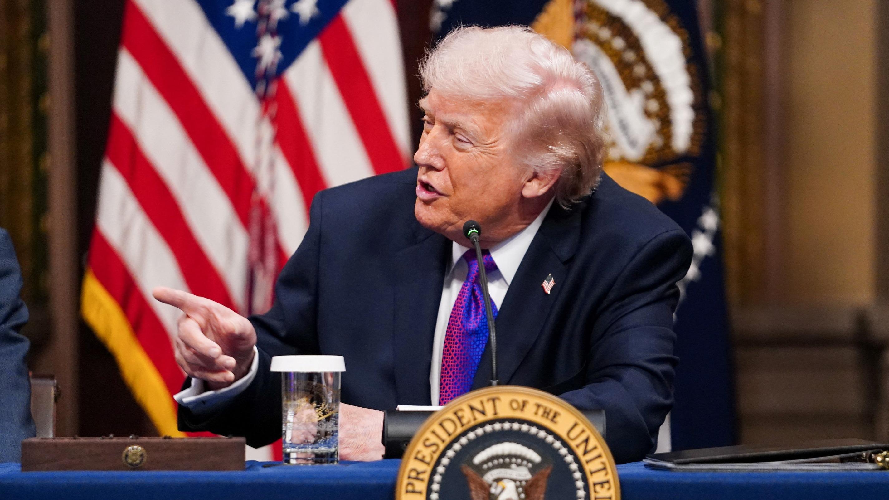 Donald Trump répond aux questions des médias, dans le Bureau ovale de la Maison-Blanche, le 3 mars, à Washington.