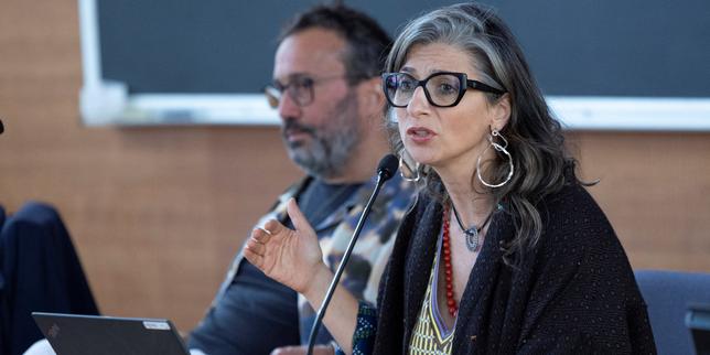 La rapporteuse spéciale des Nations unies pour les territoires palestiniens occupés, Francesca Albanese, à l’université Roma Tre, à Rome, le 6 octobre 2025.