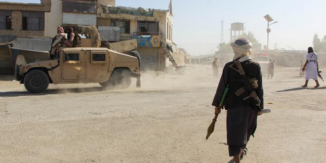 Des combattants talibans afghans patrouillent près de la frontière afghano-pakistanaise à Spin Boldak, dans la province de Kandahar, en Afghanistan, le 15 octobre 2025.