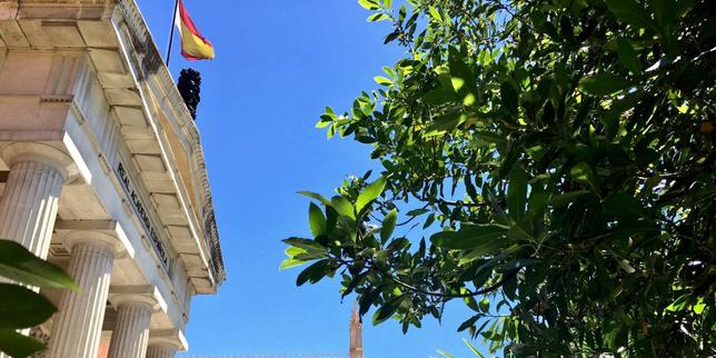 La façade de l’Académie royale espagnole (Real Academia Española, à gauche), à Madrid, en juin 2016.