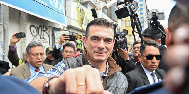 Le président bolivien Rodrigo Paz assiste à une cérémonie où il remet à Amparo Carvajal les clés du siège de l’Assemblée permanente des droits de l’homme de Bolivie (APDHB), dont elle avait été expulsée, à La Paz, le 20 novembre 2025.
