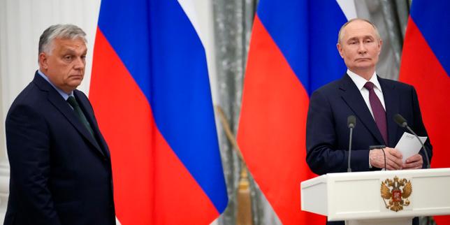Le président russe Vladimir Poutine et le premier ministre hongrois Viktor Orban, à Moscou, le 5 juillet 2024.